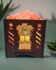 Ashoka Pillar wooden Basket Lamp with Chunks of Himalayan Rock Salt (6 Inch) - Rock Salt Lamp