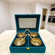 Tamas Brass Ice Cream Bowl Set of 4 with Spoons – Handcrafted Pure Brass Dessert Bowls in Velvet Gift Box - Brass