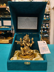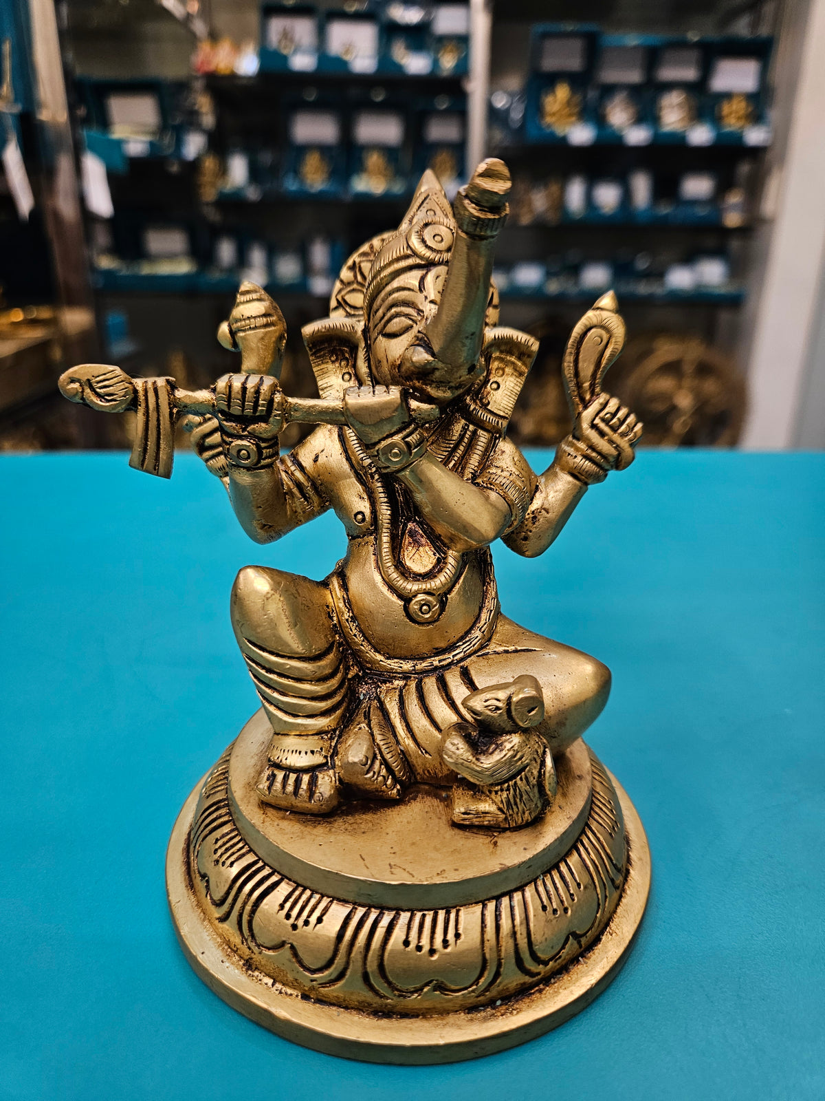 Handcrafted Brass Flute Ganesha Idol – Musical Lord Ganesha Statue for Pooja Room, Home Decor & Gifting - Brass / Ganesha